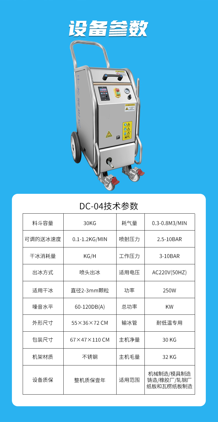 DC-04優(yōu)勢(shì):DC-04顆粒干冰清洗機(jī),干冰儲(chǔ)存容量大,清洗時(shí)間長(zhǎng)。